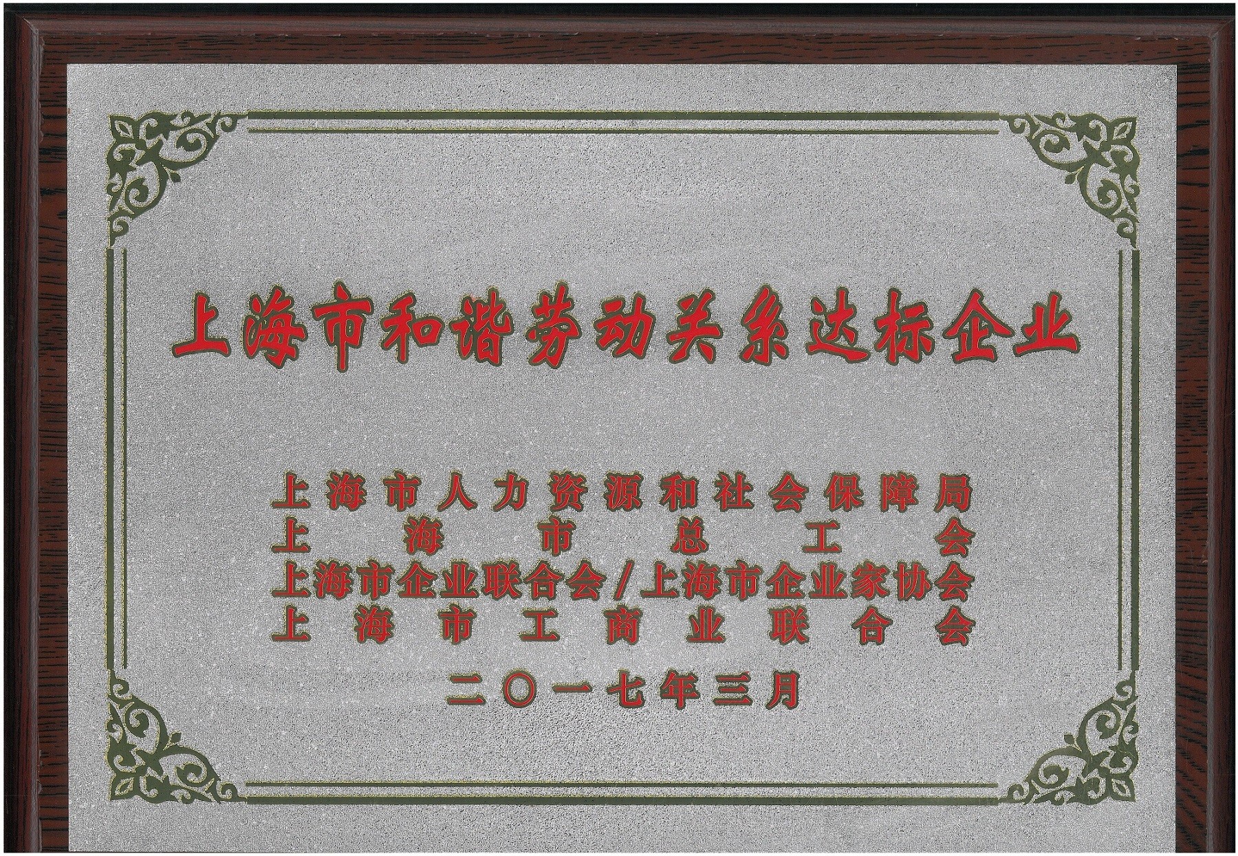 上海市和谐劳动关系达标企业