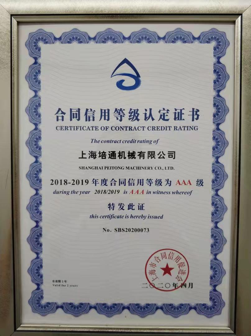 合同信用等级认定证书AAA级