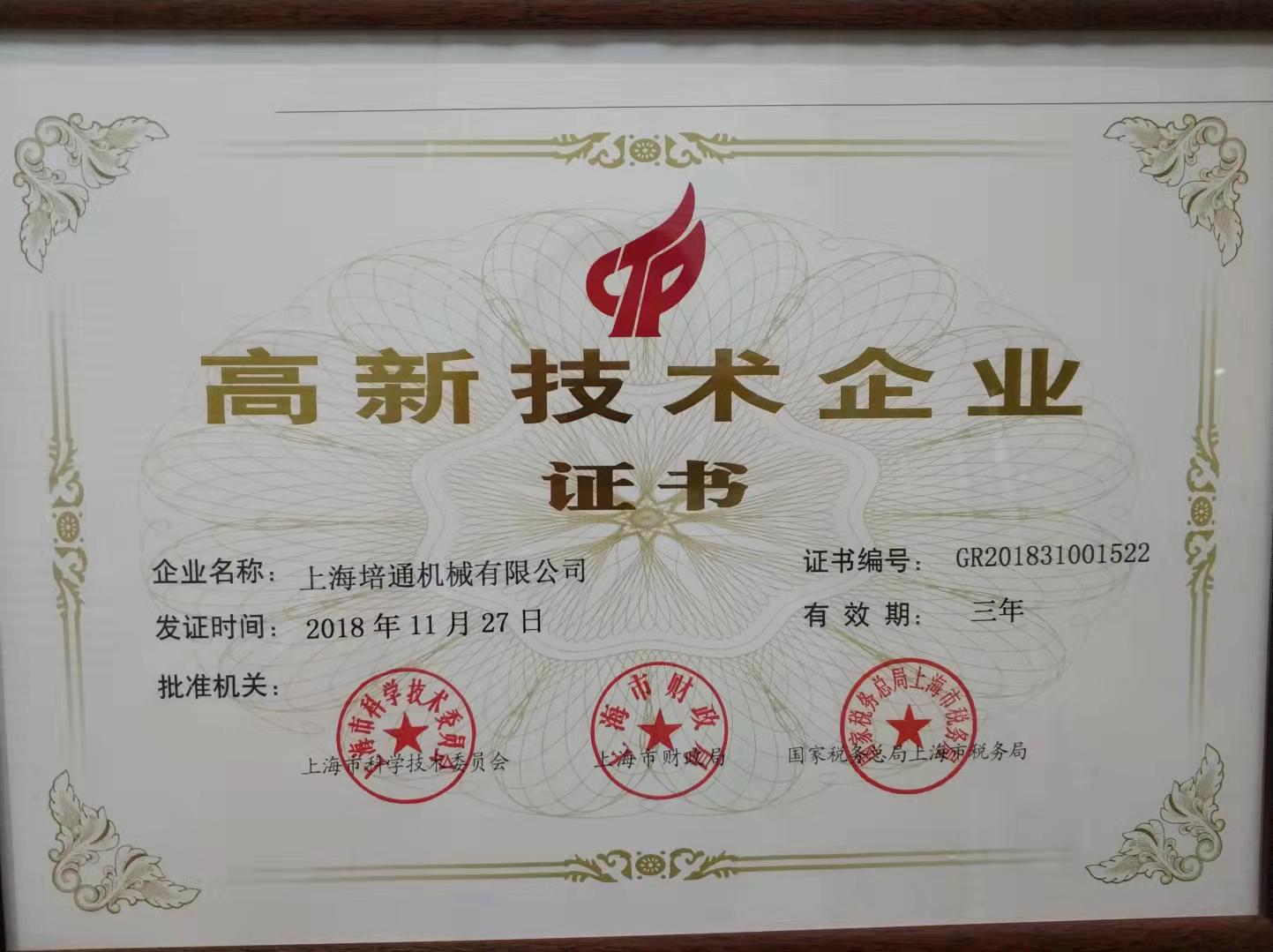 高新技术企业证书